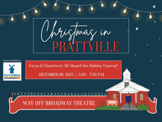 December 16, 2025 December 16, 2025Categories Press Releases WOBTPRATTVILLE’S WOBT’s 2026 SEASON INVITES YOU TO “BE PART OF THE STORY”FOR IMMEDIATE RELEASE December 15, 2025 Way Off Broadway Theatre is proud to announce its […]